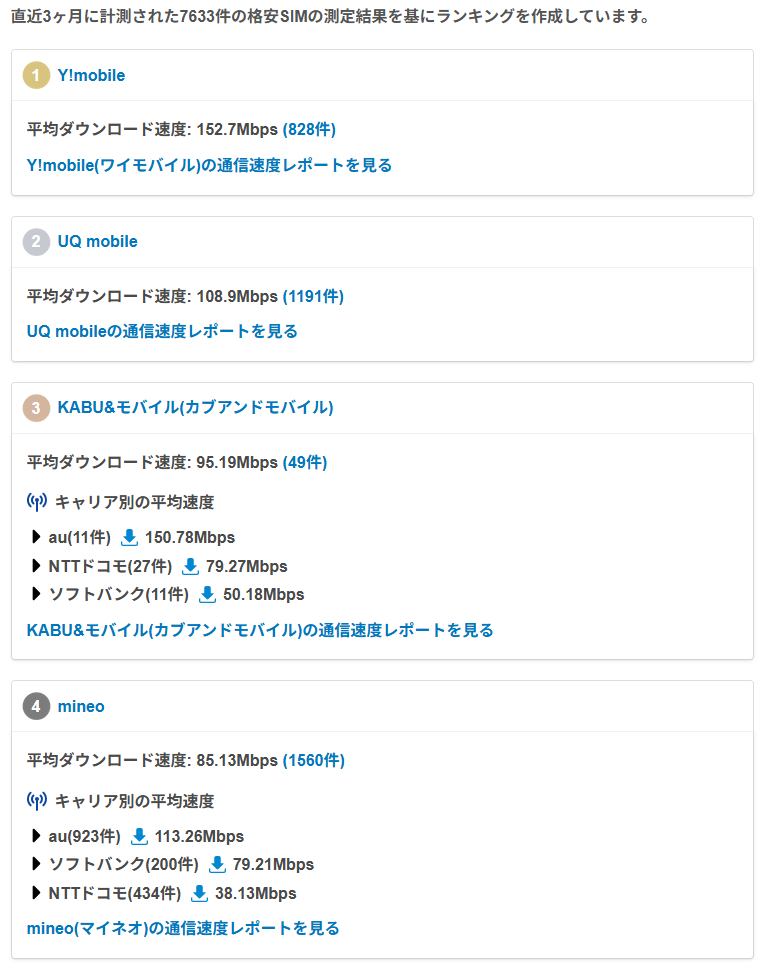 「みんなのネット回線速度」の格安SIMの速度ランキングにおいて、「カブアンドモバイル」第3位となりました。