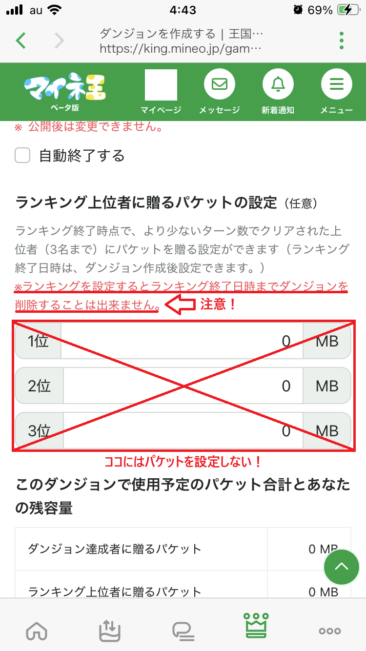 mineoの王国ダンジョンには、パケットの延命ができるという裏技がありました。