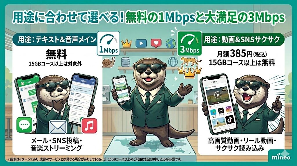 用途に合わせて選べる!無料の1Mbpsと大満足の3Mbps