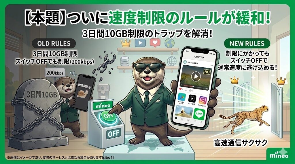 この記事では、すでに多くの方が体感している3Mbpsの快適さのおさらいに加え、今回の目玉である「速度制限ルールの見直し」について、そして、その仕組みと最強の活用法を、どこよりも分かりやすく徹底解説していきます。