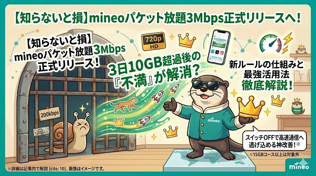 この記事では、すでに多くの方が体感している3Mbpsの快適さのおさらいに加え、今回の目玉である「速度制限ルールの見直し」について、そして、その仕組みと最強の活用法を、どこよりも分かりやすく徹底解説していきます。