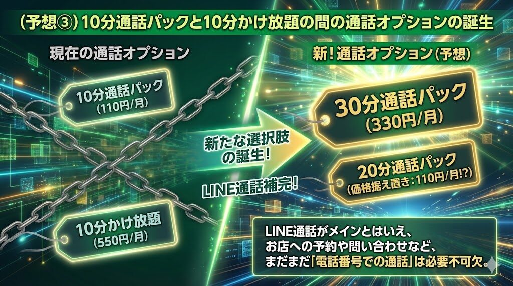 または、今の「10分通話パック」を「20分通話パック」に増量して価格据え置き