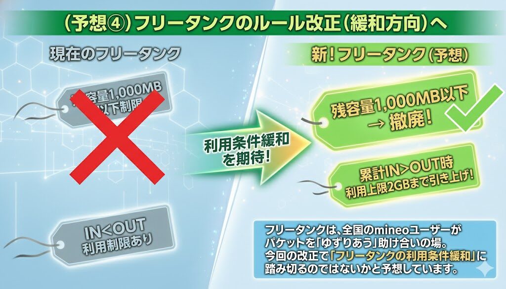 4つ目は、mineoの象徴とも言える独自サービス「フリータンク」のルール変更です。