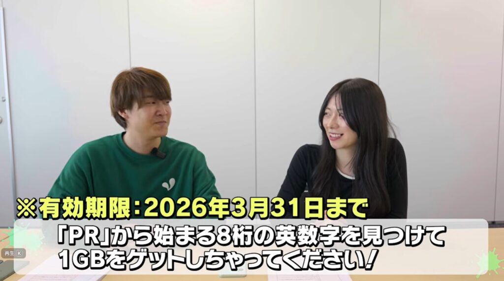 動画内のギフトコードを見つけて1GBゲット!