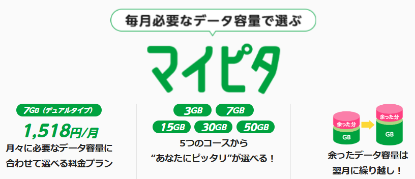 \マイピタ50ギガで1,485円のオプションが無料!/