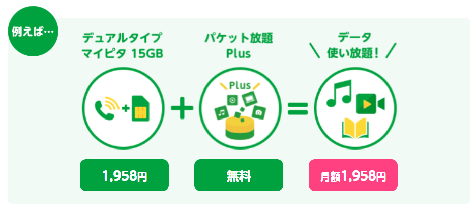 つまり、「高速通信15GB」と「データ使い放題」が1,958円で使える!
