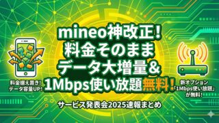 キャンペーン 【速報】mineoが神改正!料金そのままでデータ増量&1Mbps使い放題無料化!サービス発表会2025詳細まとめ