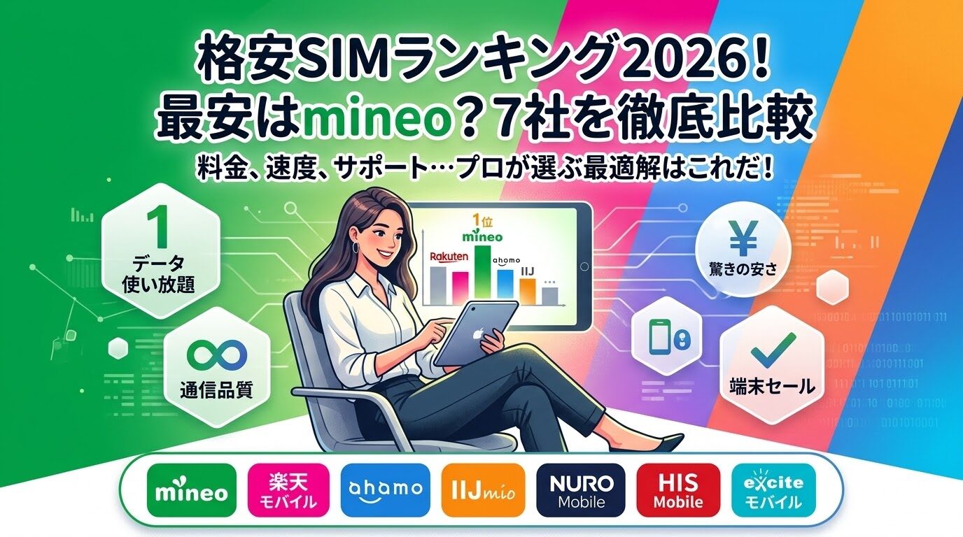 以上、mineo、NUROモバイル、エキサイトモバイル、HISモバイル、IIJmio、ahamo、楽天モバイルの7社を徹底比較してみました。